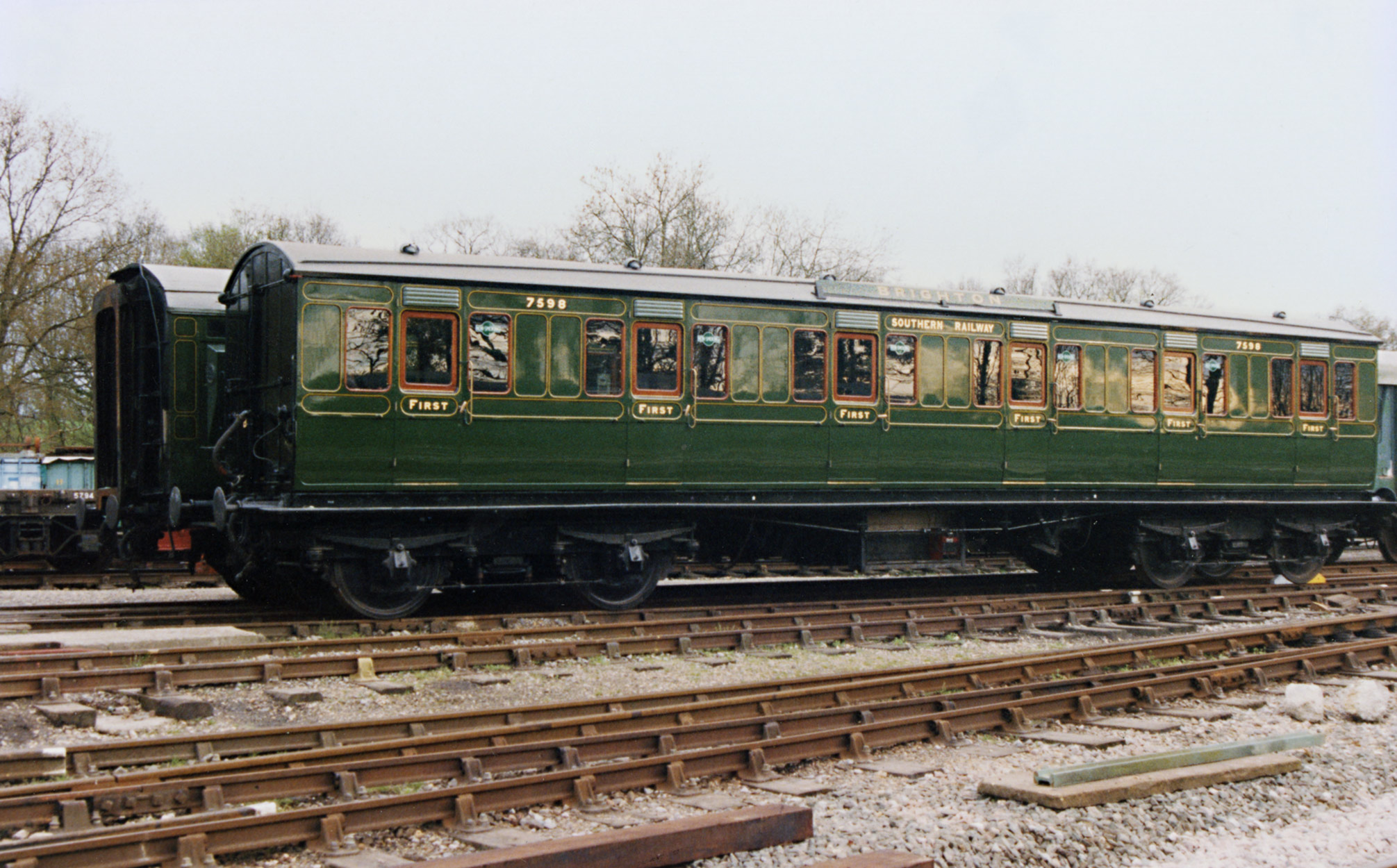 Following six years of restoration, the coach undertook its first test run on 19th June 1998, and the following day, with painting, lettering and lining still to be completed and with seating completed only in one compartment, the coach was included in the branch-line train hauled by LBSCR No.473 "Birch Grove" at the re-launch into service of this centenarian locomotive.