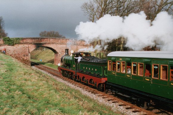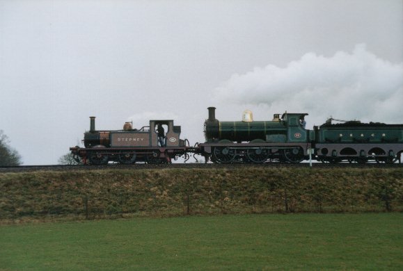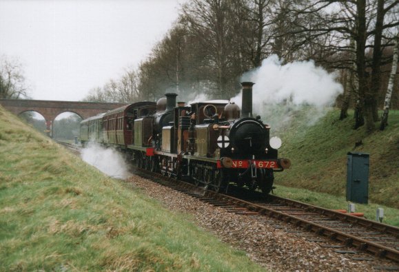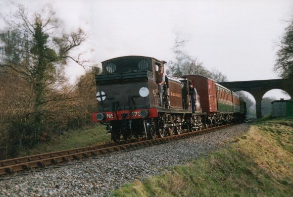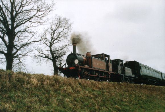 65 and 'Stepney' running through Three Arch Bridge cutting.