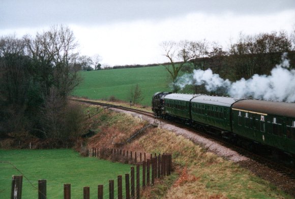 96 'Normandy' on a rare passenger turn, heading down the bank...