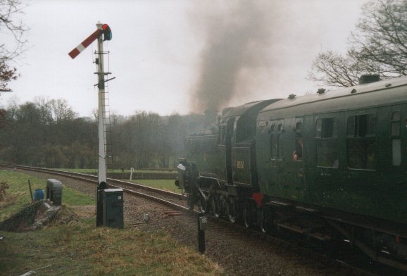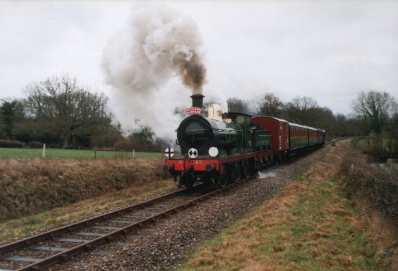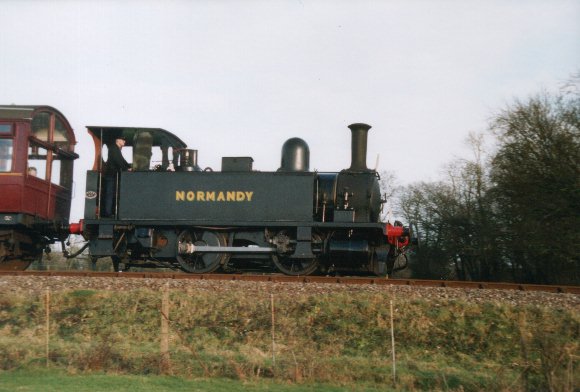 96 'Normandy' at Horsted Keynes with the 'Blue Belle'.
