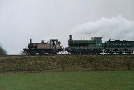 'Stepney' and 65 double-head a train up the bank just south of Horsted Keynes.