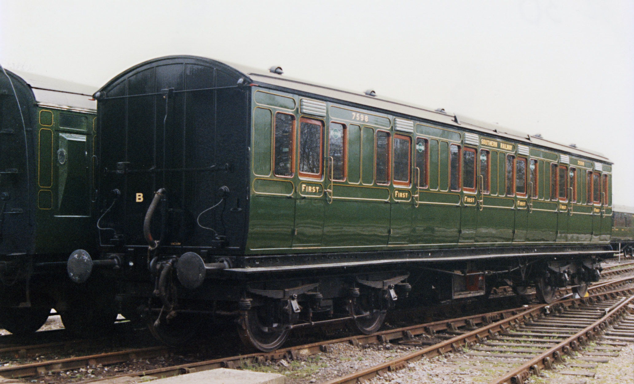 Following six years of restoration, the coach undertook its first test run on 19th June 1998, and the following day, with painting, lettering and lining still to be completed and with seating completed only in one compartment, the coach was included in the branch-line train hauled by LBSCR No.473 "Birch Grove" at the re-launch into service of this centenarian locomotive.