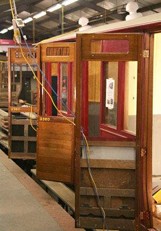 There are several key tasks to be undertaken during 3360's restoration, of which repairing the northern end is probably the major one. This end had been removed after the coach has been grounded as part of a house, in a order to extend the size of the room comprising the two compartments. The original end was placed further away from the coach and new wall sections inserted to extend the length of the room. On recovery in 2003 the original end section was recovered and brought to the Railway inside the coach body.