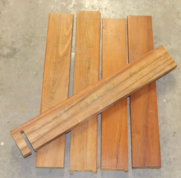 Short lengths of offcuts of teak have been machined up on the table router, to prototype the replacement body-side mouldings and the side-light (window) frames, to confirm that the cutters we already have are suitable. The required lengths will be run off once suitable teak boards are to hand.