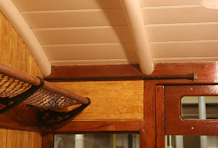 The middle compartment now has one luggage rack, and communication-cord tubing in place. This luggage rack is screwed through the partition into the backing board of the one in the adjacent compartment.