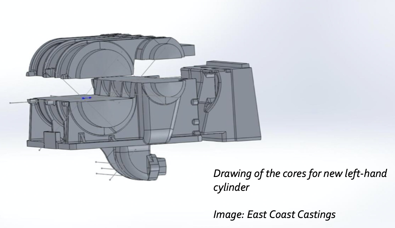 In December 2025 East Coast Castings made good progress on the new pattern for the left-hand cylinder casting that is required for Stowe, as shown in the photo on the right.
