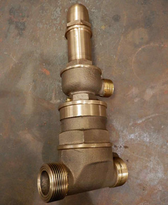 The double Ramsbottom safety valves, below, are now virtually complete. These will be pressure tested shortly to prove the body integrity and then will be re-assembled and approximately set for the blowing off pressure. Once that is done, washers are made to go between the counter-bore in the body and the underside of the adjuster to ensure that no further adjustments can be made that would increase the set pressure.