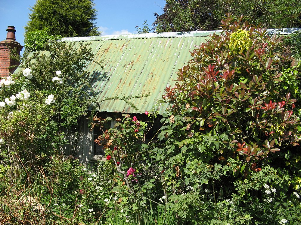 intact exterior on the garden wall side. Note the false louvers above each