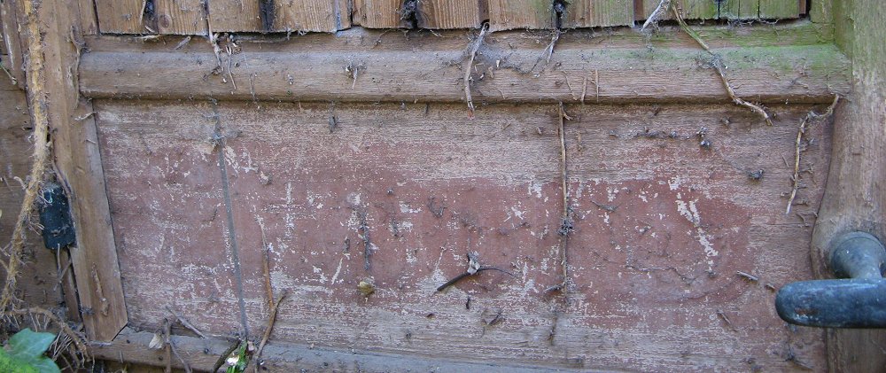 showing the domestic door which has replaced 2/5 of the panelling; paint