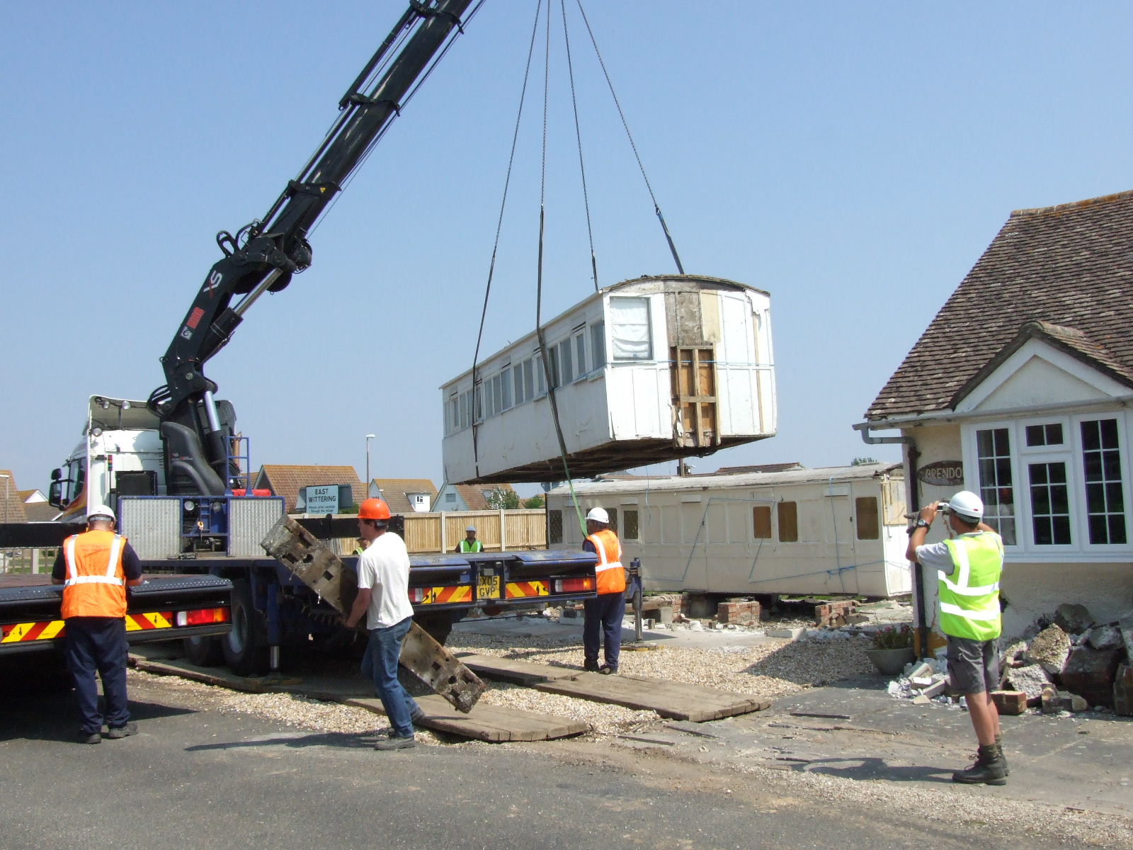The next five photos (above, left and below) show the LBSCR carriage, after removal of the overall roof, and the during the lift onto the flat-bed lorry.