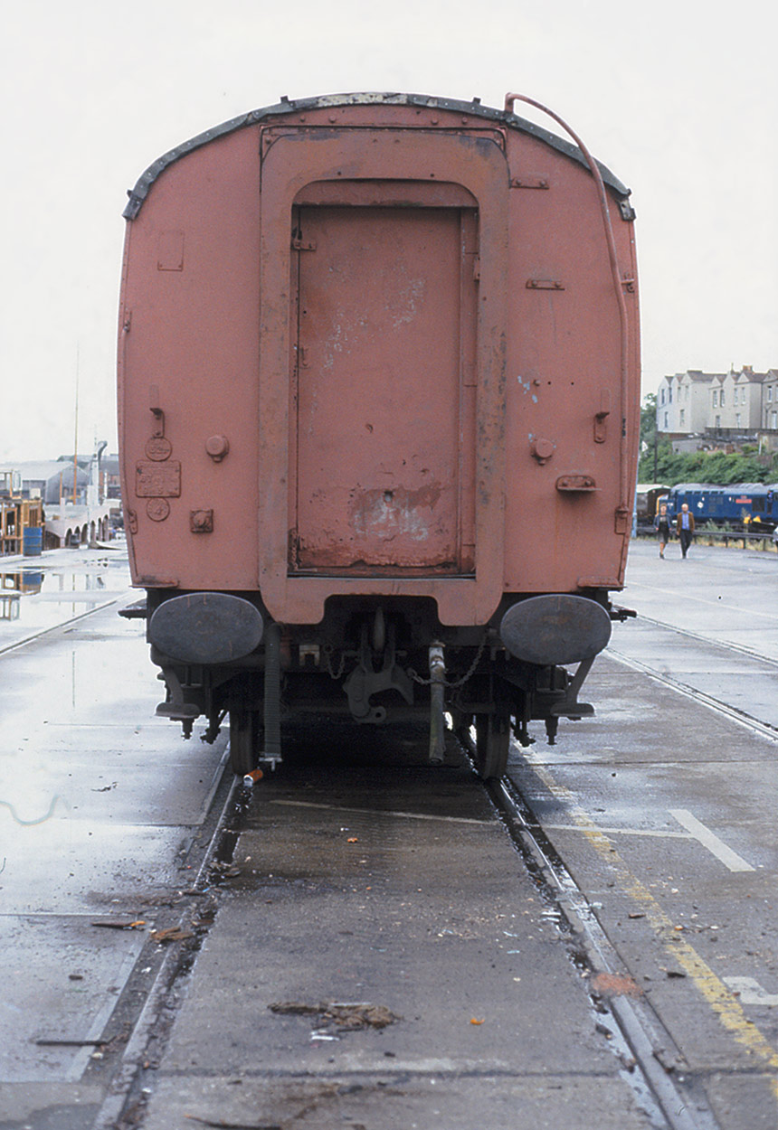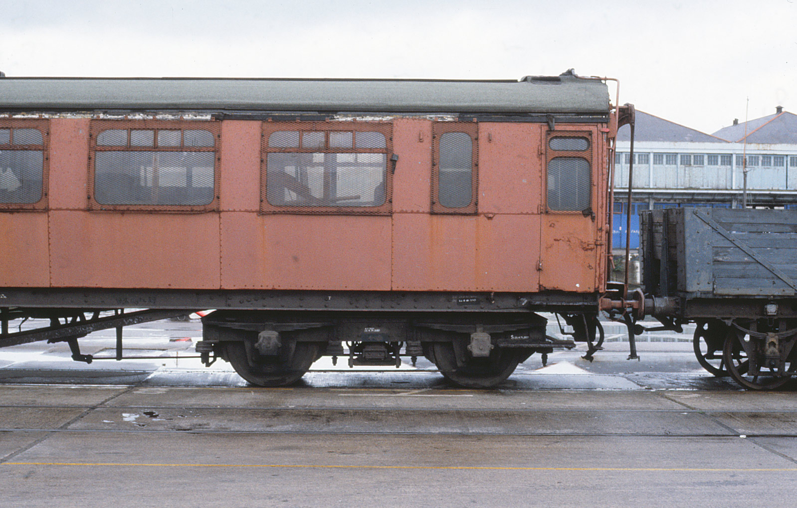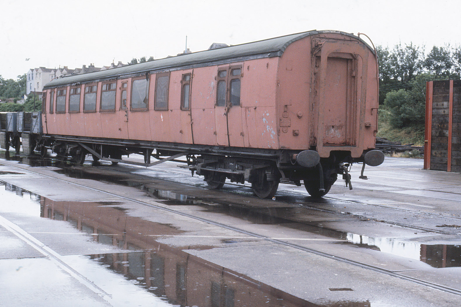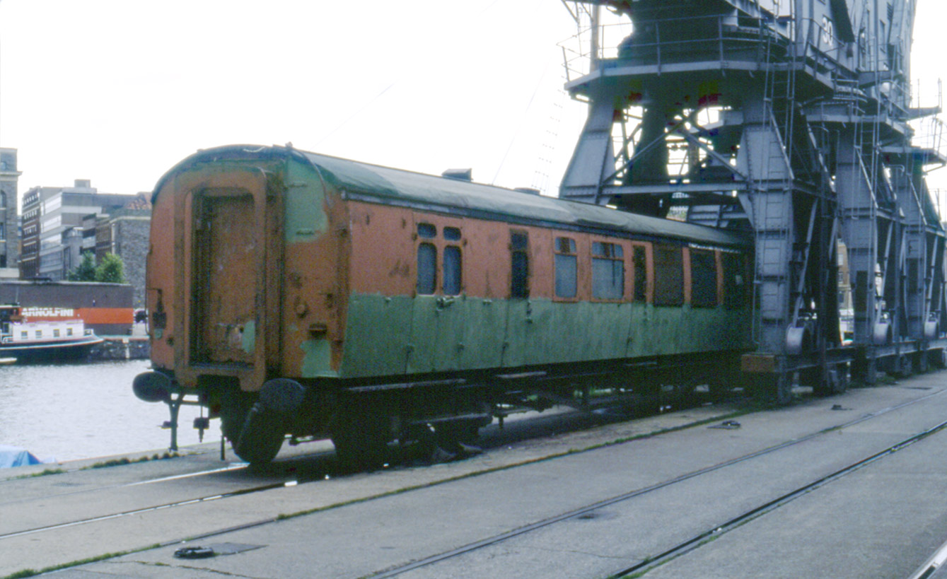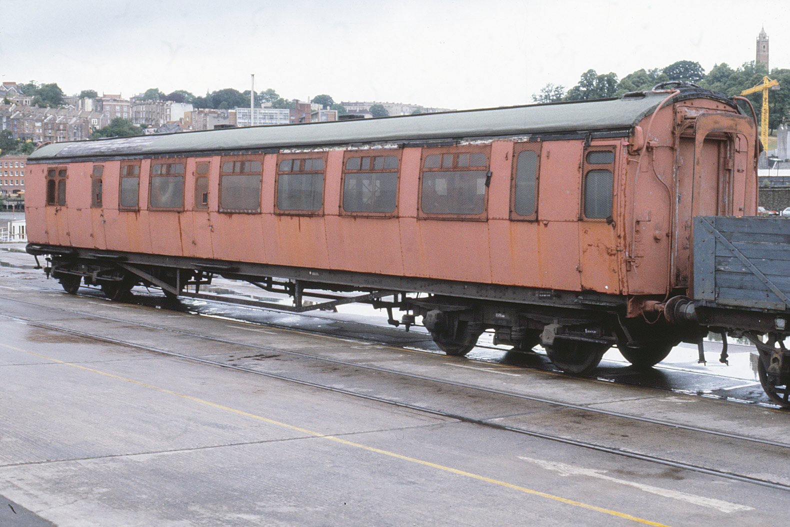 Sold into preservation initially to a maritime preservation group at Bristol Harbour in 1985 for use as a store, a swap with a full brake was arranged to enable this interesting coach to come to the Bluebell, where it remains in excellent structural condition, having been stored under a tarpaulin (and intended now to be stored in the 'OP4' shed) whilst it awaits eventual restoration.