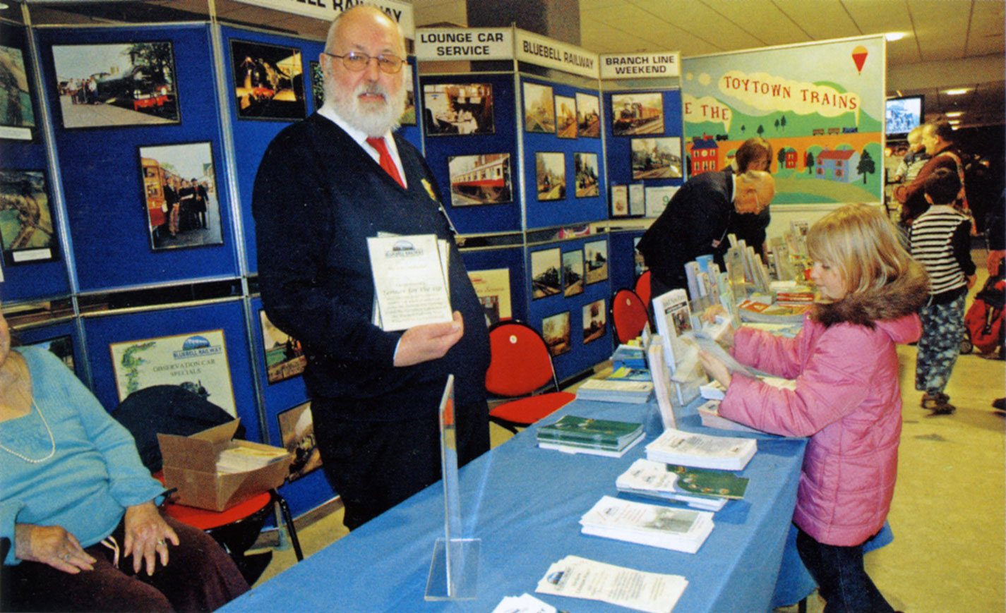 Based at Horsted Keynes, Peter was a very familiar sight around the railway, a dapper gentleman with a handlebar moustache, he was always smartly turned out with a flower in his buttonhole. He used to go through the train selling first day covers and railway stamps which he had produced, which would then be conveyed by our trains and stamped accordingly at the sending station. Latterly, he was an enthusiastic seller of Tenner for the Tip certificates, and also a member of Kingscote station staff.